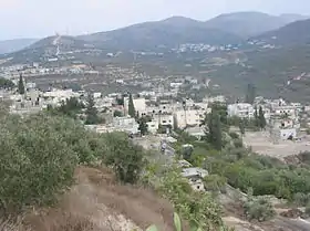 تقع البلدة في الشمال الغربي لمدينة نابلس جبل النار تبعد عنها 15 كم وبالتحديد على الطريق الواصل بين نابلس وجنين القسام، تقع على سفح جبل ارتفاعه 450م عن سطح البحر ينتهي بسهل تحيط به الحقول والبساتين النضرة، وتشتهر بزراعة الزيتون والأشجار المثمرة كالخوخ والمشمش. تجاوز عدد سكانها اليوم 3000 شخص