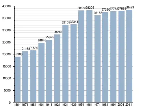 في سنة 1861 بلغ عدد السكان 18٬903 نسمة، وتطور العدد ليصل في سنة 2011 لـ 38٬429 نسمة.