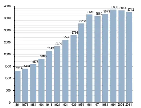 في سنة 1861 بلغ عدد السكان 1٬314 نسمة، وتطور العدد ليصل في سنة 2011 لـ 3٬742 نسمة.