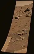 التقط المسبار في 13 فبراير 2004 الموافق يوم المريخ (سول 40) هذه الصورة الملونة لإحدى الأحجار التي تتوسط صخرة طبقية سميت ميمي. وهو أحد معالم تلك المنطقة التي تسمى ستون كاونسيل، ويختلف مظهر ذلك الحجر عن مظهر أي حجر رآه الأخصائية ن من قبل في منطقة فوهة جوسيف. ويدعو التكوين الطبقي لصخرة ميمي إلى عدة احتمالات لتكونها. ومن تلك الاحتمالات يعتقد الأخصائيون أن الصخرة إما قد تعرضت لضغط عال تحت السطح أو بتأثير صدمة أو ربما كانت أتربة تماسكت بعضها البعض في هيئة طبقات، وهذه عملية يمكن أن تتم في وجود الماء.