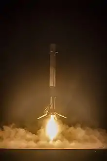 ![]() Falcon 9 Flight 20's first stage successfully landing on dry land in December 2015 Falcon 9 Flight 20's first stage successfully landing on dry land in December 2015 | |
