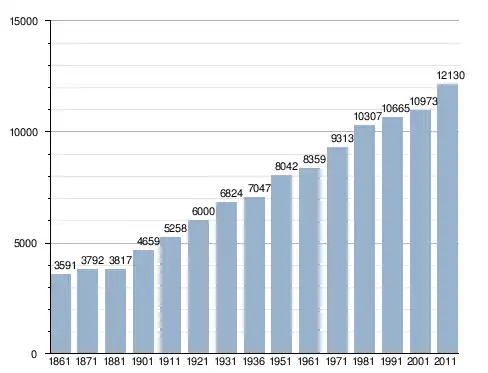 في سنة 1861 بلغ عدد السكان 3٬591 نسمة، وتطور العدد ليصل في سنة 2011 لـ 12٬130 نسمة.