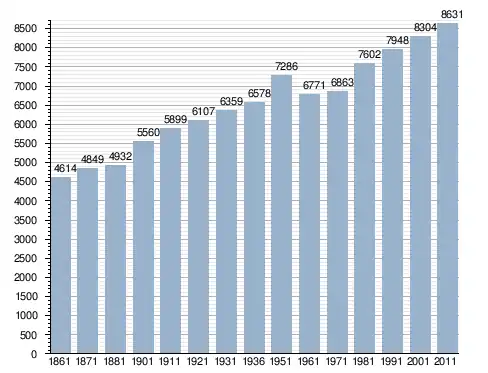 في سنة 1861 بلغ عدد السكان 4٬614 نسمة، وتطور العدد ليصل في سنة 2011 لـ 8٬631 نسمة.