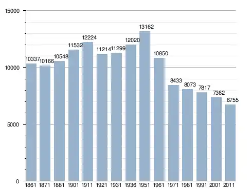 في سنة 1861 بلغ عدد السكان 10٬337 نسمة، وتطور العدد ليصل في سنة 2011 لـ 6٬755 نسمة.