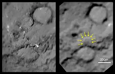 - Crater on comet 'partly healed itself' - CNN.com نسخة محفوظة 24 سبتمبر 2015 على موقع واي باك مشين.