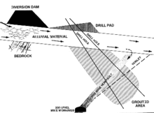 الستار الأسمنتي هو الحاجز الذي يحمي أساس السد من عوامل التربة.[1] ويمكن أن يصنع خلال البناء الأولي، أو أثناء عملية التصليح، ويمكن استخدامه أيضا في عمليات التثبيت.