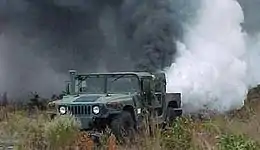 ستار دخاني منطلق من عربة هامفي تابعة للجيش الأمريكي.