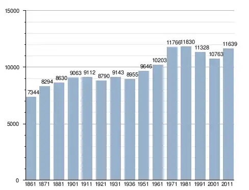 في سنة 1861 بلغ عدد السكان 7٬344 نسمة، وتطور العدد ليصل في سنة 2011 لـ 11٬639 نسمة.