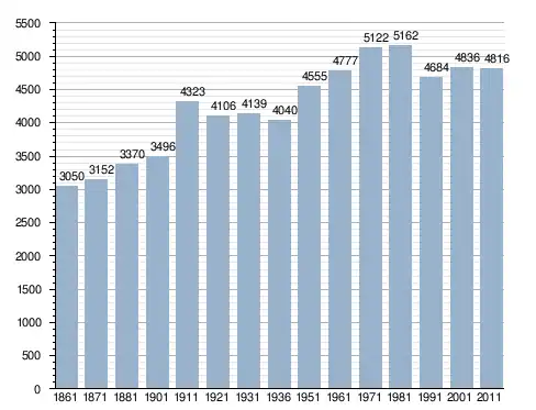 في سنة 1861 بلغ عدد السكان 3٬050 نسمة، وتطور العدد ليصل في سنة 2011 لـ 4٬816 نسمة.