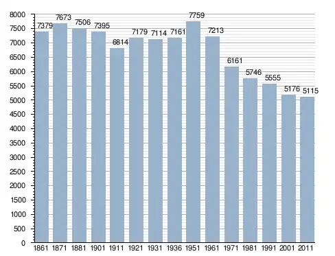 في سنة 1861 بلغ عدد السكان 7٬379 نسمة، وتطور العدد ليصل في سنة 2011 لـ 5٬115 نسمة.