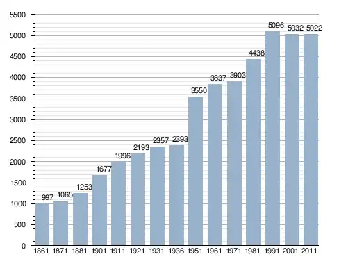 في سنة 1861 بلغ عدد السكان 997 نسمة، وتطور العدد ليصل في سنة 2011 لـ 5٬022 نسمة.