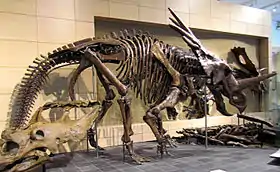 ![]() هيكل عظمي لستيراكوسوروس في المتحف الكندي للطبيعة | |