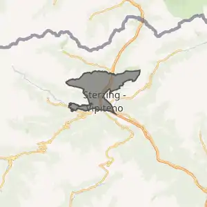- "صفحة ستيرزنج في خريطة الشارع المفتوحة". OpenStreetMap. اطلع عليه بتاريخ 4 مارس 2021. الوسيط