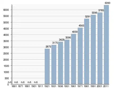 في سنة 1871 بلغ عدد السكان نسمة، وتطور العدد ليصل في سنة 2011 لـ 6٬390 نسمة.