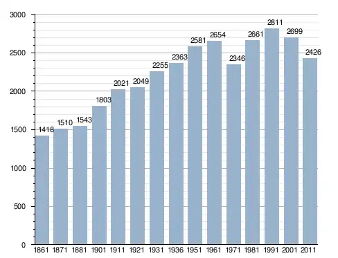 في سنة 1861 بلغ عدد السكان 1٬418 نسمة، وتطور العدد ليصل في سنة 2011 لـ 2٬426 نسمة.