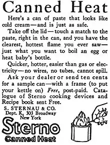 ستيرنو (بالإنجليزية: Sterno) أو الحَرارة المُعلبة (بالإنجليزية: Canned heat)، وهوَ وَقود مُصنع بشكل أساسي من كُحول هُلامي مَشُوب [1]، وهيَ مُصممة ليتم حَرقها بشكل مُباشر من العُلبة، تُستخدم بشكل أساسي في تدفئة الطَعام المُستخدم في البوفيهات، وتستخدم أيضاً لتدفئة طَبق الفوندو (طَبق سويسري إيطالي فَرنسي مُعد مِن الجُبن المُذاب يُقدم في قِدر مُشترك) الذي يُوضع فَوقه فَيعمل الستيرنو كَموقد صَغير يُحافظ على قوام الطَبق السائل، كما يمكن استخدامه للمواقد في المُخيمات وكمصدر للحرارة في حالات الطوارئ. وَتُأخذ كَلمة ستيرنو على أنها الاسم التِجاري لهذا الوُقود المَحروق، وَيُعتبر الستيرنو ساماً ما لم يَتم أخذ الاحتياطات اللازمة عند استعماله.