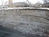 نيو أورليانز بعد إعصار كاترينا: الطبقات الرسوبية الصخرية في العصور التاريخية. كان هذا القطع محاولة للعثور على حجر الأساس بجوار شارع سكني بالقرب من قناة لندن. بعد ترميم السدود التي تم حرثها/التنقيب فيها جيدًا من قبل فيلق القوات البرية الأمريكي الهندسي، ظهرت طبقة أرضية حديثة في تاريخ الأرض.