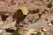 انهيار صخري قديم حمى الصخور التي تقع تحته من التآكل الواسع النطاق. مأخوذة على طول طريق بور، جراند ستيركيس إسكالانتي، النصب التذكاري الوطني، يوتا، الولايات المتحدة الأمريكية.
