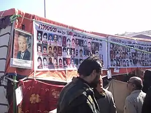 ![]() مظاهرة في بنغازي ويُلاحظ في الخلفيّة صُوَر ضحايا مذبحة سجن أبو سليم في شباط/فبراير 2011 مظاهرة في بنغازي ويُلاحظ في الخلفيّة صُوَر ضحايا مذبحة سجن أبو سليم في شباط/فبراير 2011 | |
