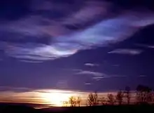 سحابات ستراتوسفير قطبية، وتعرف أيضًا بالسحابات الصدفية، هي سحابات تتكون في طبقة ستراتوسفير في الجو في القطب خلال فصل الشتاء على ارتفاع 15,000 - 25,000 متر (50,000 - 80,000 قدم).[1][2][3] هذه السحابات تشترك في تكوين ثقوب الأوزون. فتأثيرها على نضوب طبقة الأوزون يرتفع لأنها تسبب تفاعلات كيماوية تنتج كلور فعال الذي يحفز تخريب طبقة الأوزون، ولأنها تزيل حوامض النتريك الغازية ومجموعات نيتروجين وكلور مما يزيد من تخريب طبقة الأوزون.