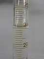 دقة السحاحة لا تمكن من استعمالها في القياسات الدقيقة حيث من المهم نجنب أخطاء الأجهزة أثناء العمل المخبري. عند قراءة التدريجات في السحاحة يجب أن تكون عين الناظر في مستوى سطح السائل وذلك لتجنب خطأ اختلاف القراءة، حتى أن سماكة الخطوط المطبوعة على السحاحة تلعب دوراً في ذلك. القراءة الصحيحة تتم بأن يكون أسفل تقعر السائل ملامساً أعلى خط التدريجة التي تريد قياسها. هناك قاعدة شائعة مسلم بها وهي إضافة 0.02 مل إلى الحجم الكلي إذا كان تقعر السائل ملامساً أسفل خط التدريجة.