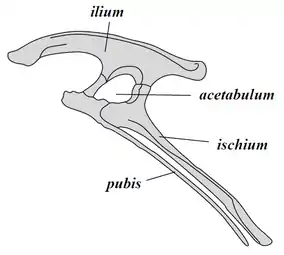 ![]() حوض تيرانوصور ذو مفصل وركيٍّ شبيه بالسحالي | |