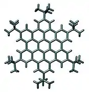 Crystal structure of a كورونين composed of hexagonal aromatic rings.