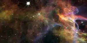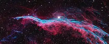 Veil Nebula observed by مرصد هابل الفضائي.[10]
