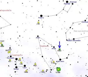 خريطة تبين موقع إن جي سي 7023 بالقرب من نجم الفرق (عن: Roberto Mura )