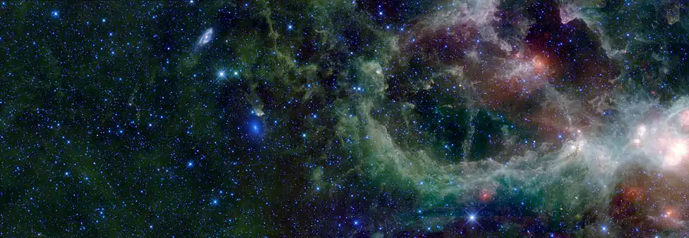 سديم القلب و سديم الروح ؛ صورة للاشعة تحت الحمراء الصادرة منهما ، ناسا ، WISE telescope.
