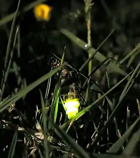 ![]() أنثى دودة متوهجة في عشب أخضر | |