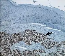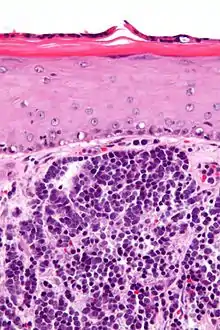 ![]() صورة مجهرية لسرطان خلايا ميركل. صبغة الهيماتوكسيلين والأيوزين. صورة مجهرية لسرطان خلايا ميركل. صبغة الهيماتوكسيلين والأيوزين. | |