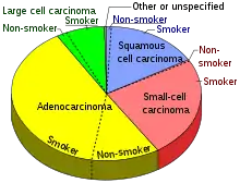 - Table 2 in: "Comparison of aspects of smoking among the four histological types of lung cancer". Tob Control. 17 (3): 198–204. 2008. doi:10.1136/tc.2007.022582. PMC 3044470. PMID 18390646. مؤرشف من الأصل في 10 سبتمبر 2017. اطلع عليه بتاريخ 14 أغسطس 2020. الوسيط