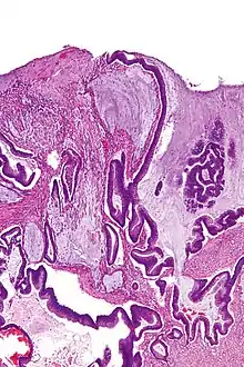 السرطانة المخاطية (بالإنجليزية: Mucinous carcinoma) هي نوع من السرطان الذي ينشأ من الخلايا الظهارية التي تبطن أعضاء داخلية معينة كما تبطن الجلد، وهي أيضًا تنتج الموسين (المكون الرئيسي للمخاط ).[1]