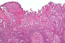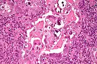 ![]() صورة مجهرية ل"سرطانة مصلية حليمية رحمية" بصبغة H&E. صورة مجهرية ل"سرطانة مصلية حليمية رحمية" بصبغة H&E. | |