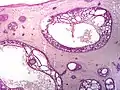صورة مجهريّة لورم بينكوس الظّهاري اللّيفي (صبغة)H&E