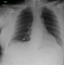 | الأعراض | ألم الصدر [3]، وسعال [4]، ونفث الدم [4]، وإعياء [4]، وفقدان الوزن [4]، وفقدان الشهية [4]، وضيق النفس [4]، وأزيز [4] |