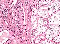 ![]() صورة مجهرية showing the most common type of kidney cancer (clear cell سرطانة الخلية الكلوية). H&E stain. صورة مجهرية showing the most common type of kidney cancer (clear cell سرطانة الخلية الكلوية). H&E stain. | |