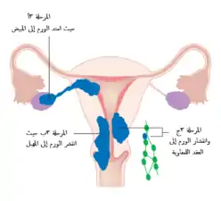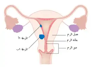 ![]() A diagram of the location and development of endometrial cancer موقع ونمو سرطان الرحم. | |