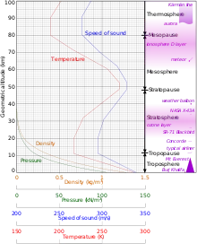 في ظل الظروف الجوية العادية، تختلف درجة الحرارة، وبالتالي سرعة الصوت، باختلاف الارتفاع:
