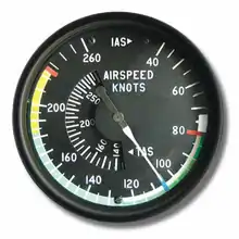 سرعة الهواء المبينة هي قراءة مؤشر السرعة وهي غير مصححة من خطأ الجهاز أو الموقع أو أي خطأ آخر. ولتعريفات هيئة الطيران الأوربي: مبين السرعة الجوية هو سرعة الطائرة كما هو معدل على مؤشر البيتوت ستاتيك الظاهر بالصورة ليعكس دفق التيار الجوي القياسي القابل للانضغاط على سطح البحر وغير مصحح لخطأ نظام السرعة الجوية .