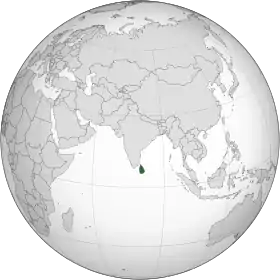سريلانكا أو سري لانكا والتي كانت تسمى بين 1948 و1972 باسم سيلان، واسمها الرسمي جمهورية سريلانكا الديمقراطية الاشتراكية (بالسنهالية:ශ්රී ලංකාව، بالتاملية: இலங்கை)، هي دولة جزرية تقع في شمال المحيط الهندي جنوب شبه القارة الهندية، في جنوب آسيا. لسريلانكا حدود بحرية، شمالاً، مع الهند، التي تبعد عنها حوالي 31 كيلومترا (19، 3 ميل)، ومع جزر المالديف، في جنوبها الغربي.