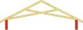 دعامة الجملون: 1: دعامة الجملون المركزيّة العموديّة، 2: عارضة رابطة، 3: روافد رئيسية، 4: دعامات عرضية. |