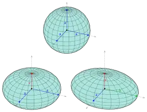 حيث a و b و c أعداد حقيقة موجبة تشكل أنصاف قطر الجسم متعامدة مع بعضها في مركز الجسم وتحدد أبعاد السطح الناقص. إذا تساوى نصفي قطر للجسم فإن الجسم الناتج يكون شبه كرة، وأما إذا تساوت الثلاثة أنصاف قطر فإن الجسم الناتج هو كرة.