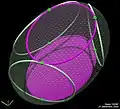 سطح ناقص مختلف الثلاثة أبعاد (أسفل إلى اليمين, a=4.5, b=6, c=3)