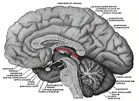 ![]() السطر النخاعي المهادي مُعلم باللون الأحمر أعلى المهاد | |