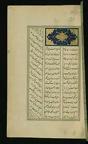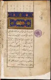 |CitationClass=تم تجاهله (مساعدة); تحقق من التاريخ في:|تاريخ=(مساعدة) - صباح عبد الكريم مهدي (آب 2011 م). "النظم بالعربية خلال الشعر الفارسي". مجلة دراسات إيرانية. جامعة البصرة (14): صفحة 151. ISSN 2223-2354. مؤرشف من الأصل في 15 نوفمبر 2016. الوسيط