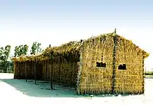 وقد استخدم سعف النخيل في بناء منازل العرب قديماً وكانت جذوع النخل تشكل العمدان ولا تزال بعض الدول العربية تحتفظ بتراثها على شكل هذه البيوت. وقد استخدمت أجزاء النخيل المختلفة في بناء مسجد المدينة قديماً.[21] وقيل أن الرسول صلى الله عليه وسلم كان يتكئ على جذع نخلة عندما كان يخطب.[21]