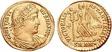 استمرت العملات المعدنية الصادرة في عهد قسطنطين الأول -أول إمبراطور مسيحي- وخلفائه في عرض الرموز التقليدية للنصر، ولكن غالباً ما يُقترن بالرمزية المسيحية مثل كريستجرامس. السيناتور الروماني سيماخوس الذي حاول الحفاظ على التقاليد الدينية لروما تحت السيطرة المسيحية، تم تصويره على قطعة من العاج تحمل غصن نخلة كإستعارة للانتصار على الموت.