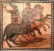 قائد عجلة حربية منتصر يحمل غصن نخيل على فسيفساء رومانية